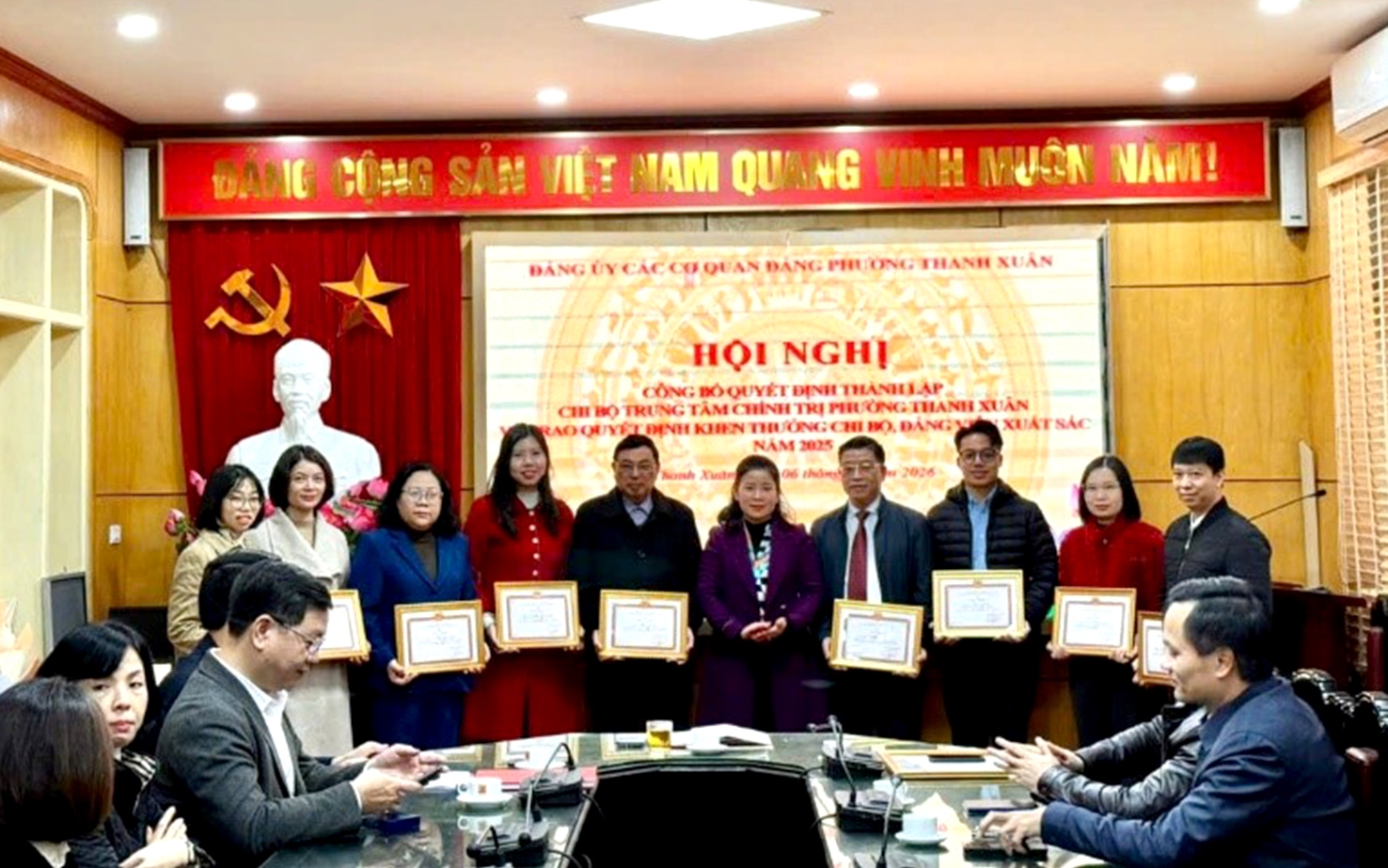 Tại hội nghị, Ban tổ chức long trọng công bố và trao Quyết định thành lập Chi bộ Trung tâm Chính trị phường Thanh Xuân; chỉ định đồng chí Phạm Thị Thu Hường - Giám đốc Trung tâm Chính trị là Bí thư Chi bộ.