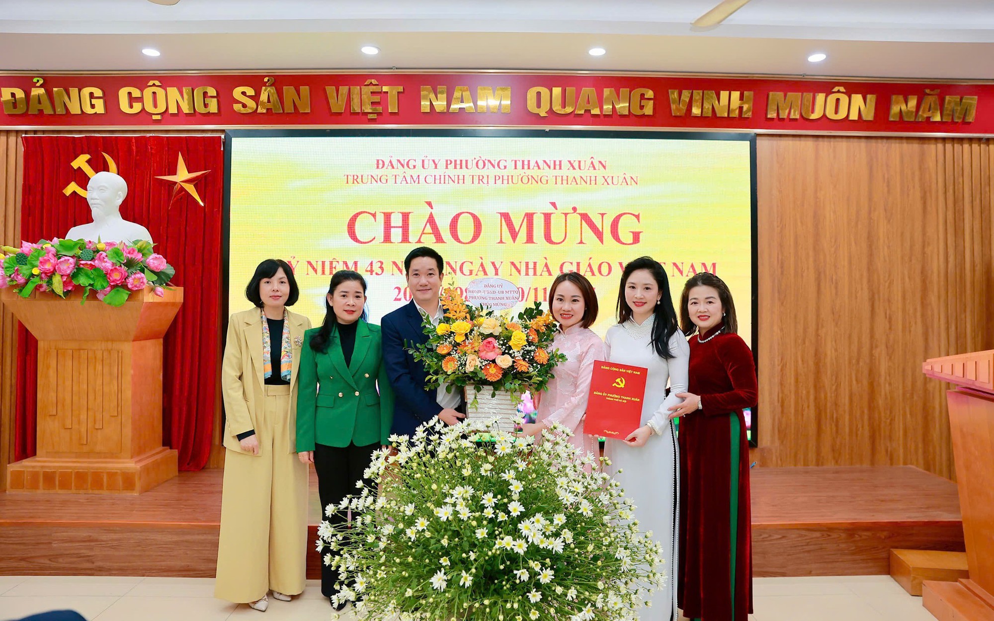 Ngày 19/11/2025, Trung tâm Chính trị phường Thanh Xuân tổ chức gặp mặt truyền thống nhân kỷ niệm 43 năm Ngày Nhà giáo Việt Nam (20/11/1982-20/11/2025) nhằm tri ân sâu sắc tới sự quan tâm lãnh đạo, chỉ đạo và tạo điều kiện của các đồng trí Thường trực Đảng uỷ phường Thanh Xuân, Khương Đình, Phương Liệt; đặc biệt, tri ân, tôn vinh những đóng góp của đội ngũ lãnh đạo, cán bộ làm công tác giáo dục lý luận chính trị trên địa bàn Thanh Xuân trong suốt chặng đường xây dựng và phát triển.