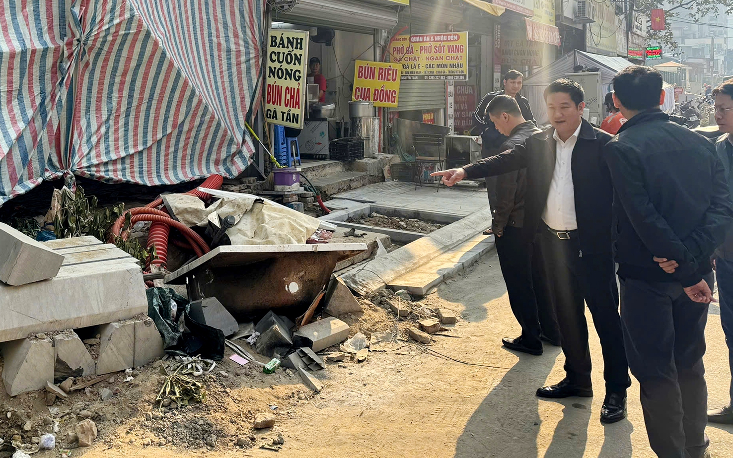 Tại hiện trường, lãnh đạo phường đã nghe đại diện đơn vị thi công báo cáo tình hình triển khai các hạng mục của dự án; tập trung kiểm tra công tác tổ chức thi công, tiến độ thực hiện, việc đảm bảo trật tự an toàn giao thông, vệ sinh môi trường và an toàn lao động trong quá trình thi công.