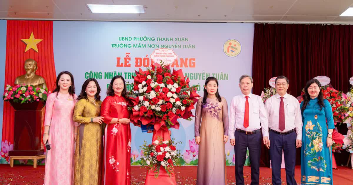 Lãnh đạo phường Thanh Xuân tặng hoa chúc mừng Trường Mầm non Nguyễn Tuân