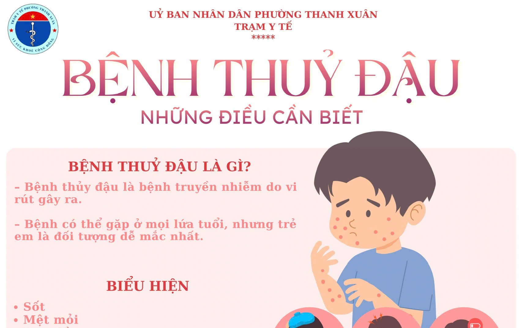 Thủy đậu là bệnh truyền nhiễm thường gặp, dễ bùng phát thành dịch và có thể xảy ra ở mọi lứa tuổi, đặc biệt là trẻ em. Dù lành tính nhưng nếu không được xử trí đúng cách, bệnh có thể dẫn đến những biến chứng không mong muốn. Hãy cùng trang bị ngay những kiến thức cơ bản về biểu hiện, cách xử trí và biện pháp phòng ngừa dưới đây.